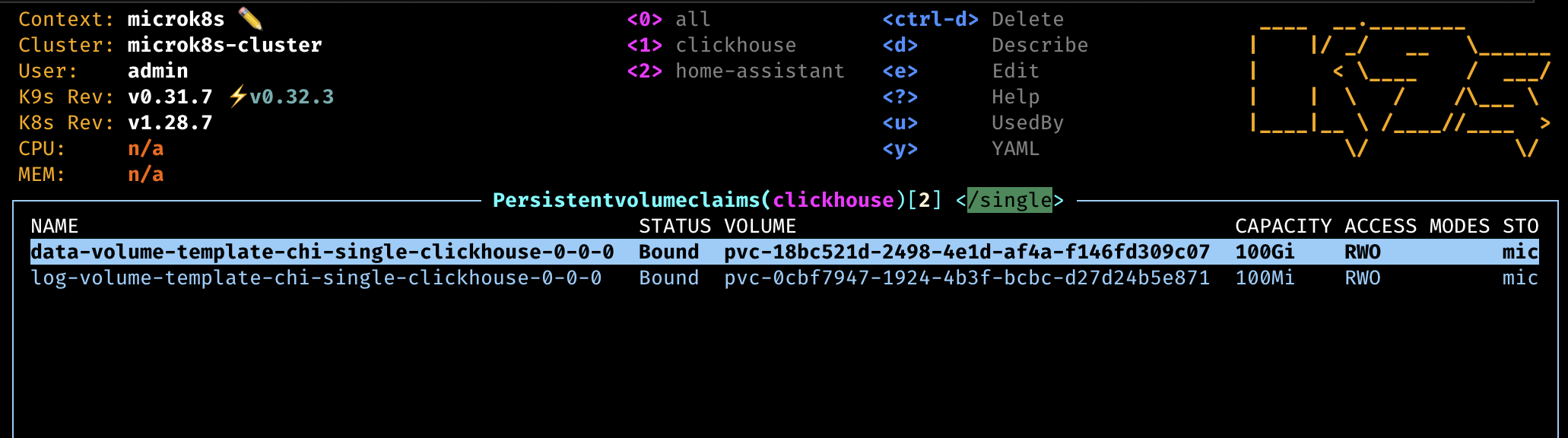 Applying again clickhouse-operator will create two new PVCs and attach it into your pod.