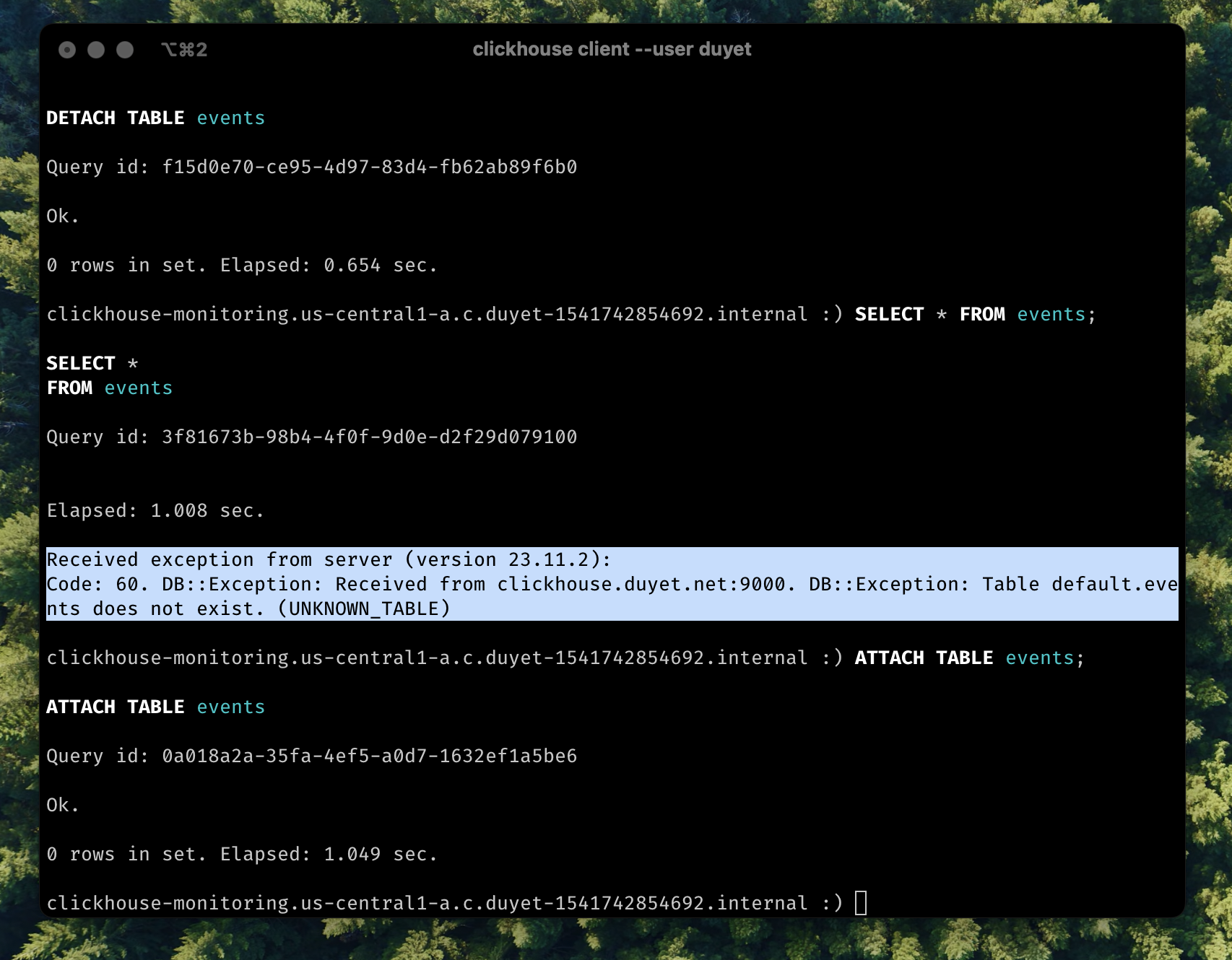 0 rows in set. Elapsed: 99.556 sec.