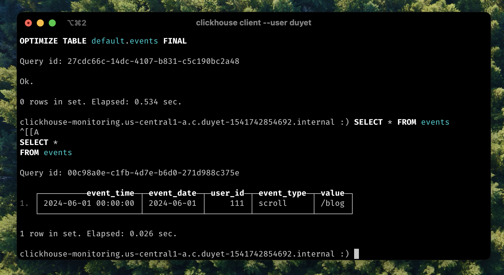 OPTIMIZE TABLE default.events FINAL