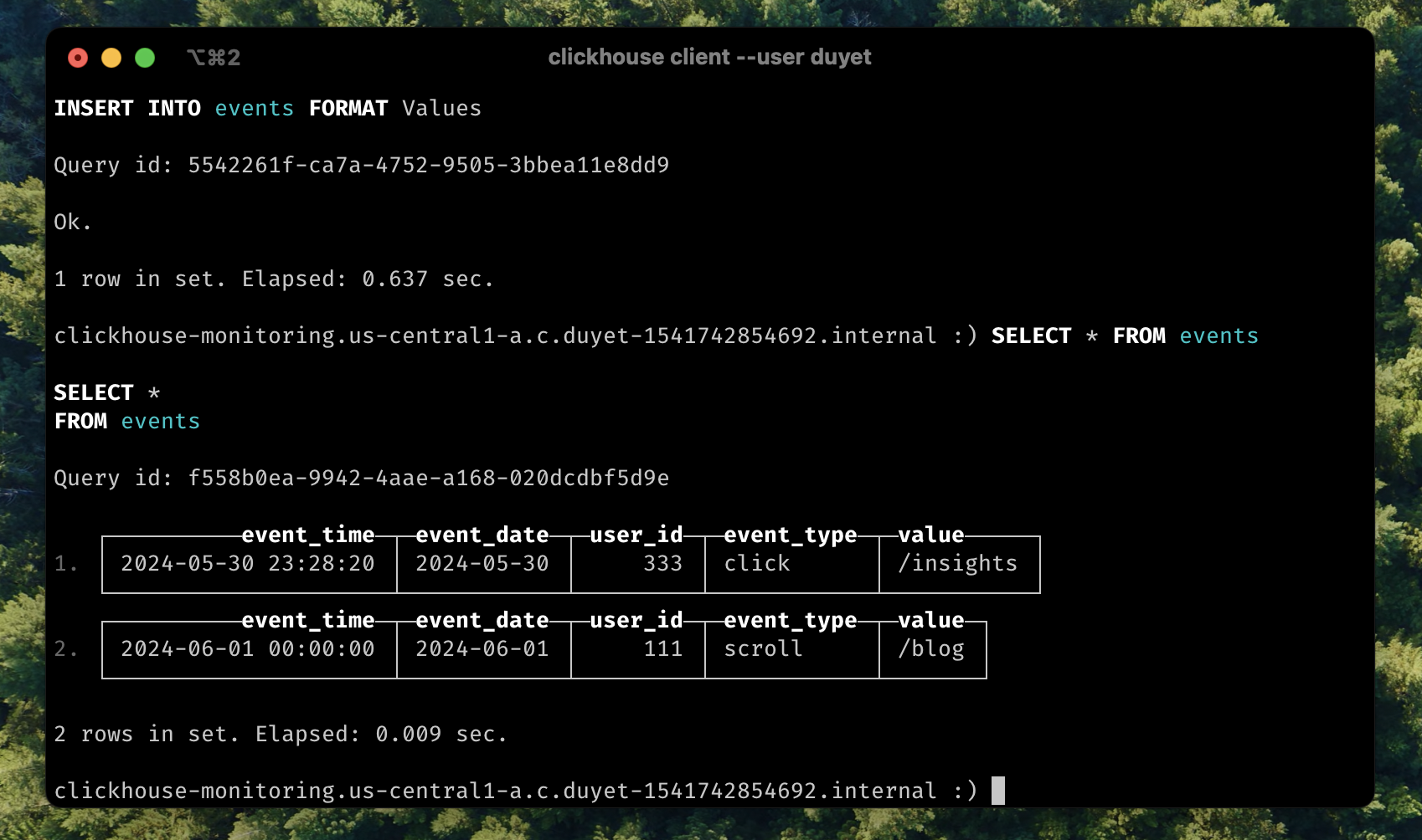 │ 2024-05-31 08:16:36 │ 2024-05-31 │ 333 │ click │ /insights │